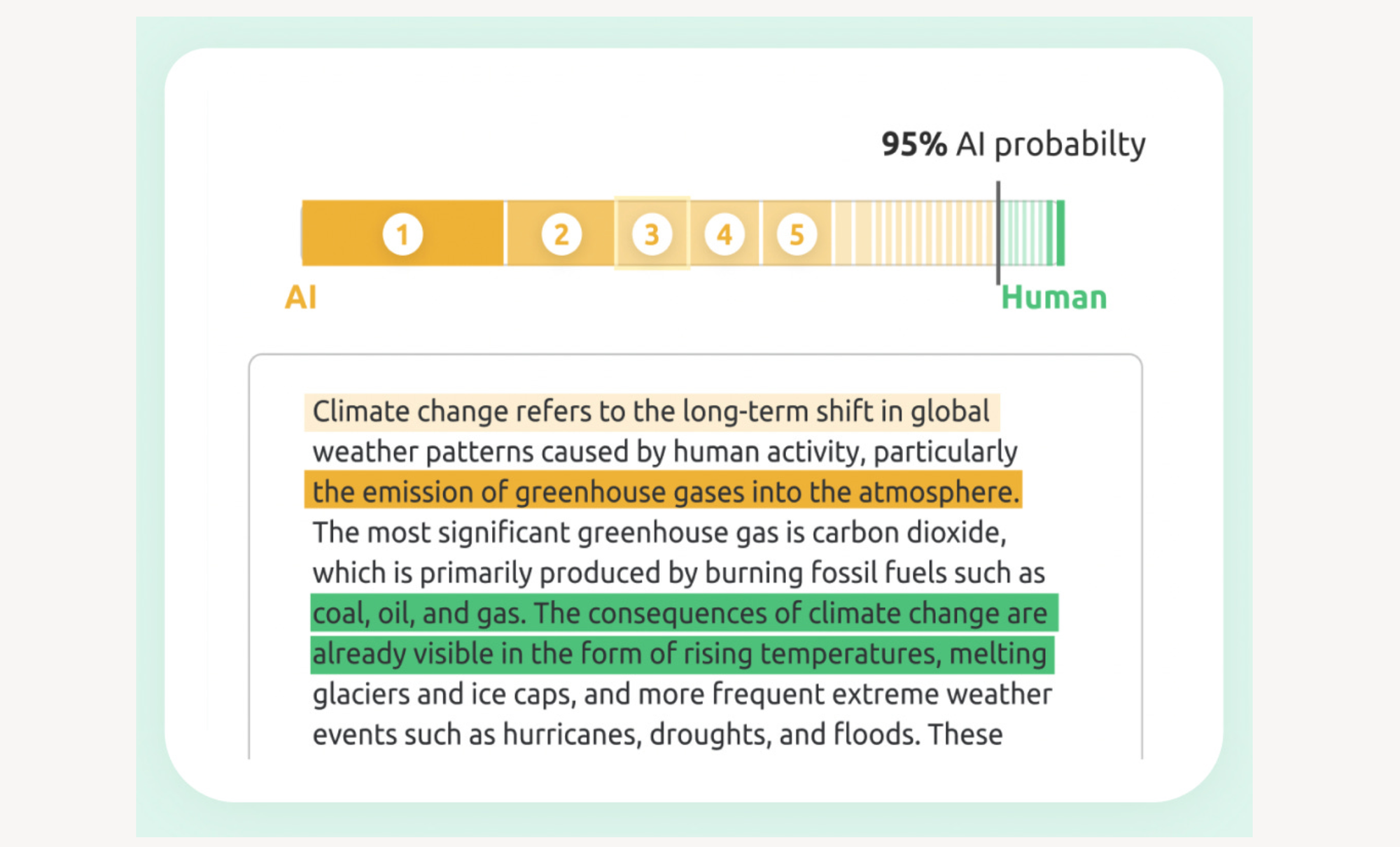 In this scan, you’ll notice something different than any other AI detection result. It comes with a red/yellow/green score assessing the result confidence.