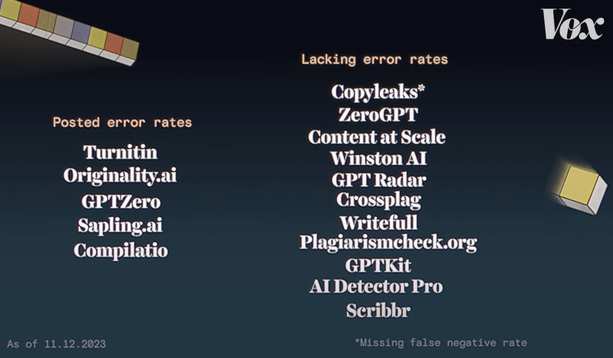 *Note that our competitors don’t have as strong of a way of classifying mixed samples (text that includes both AI and human data), so these false positive and negative rates include cases where they identified mixed samples as either wholly human or wholly AI.