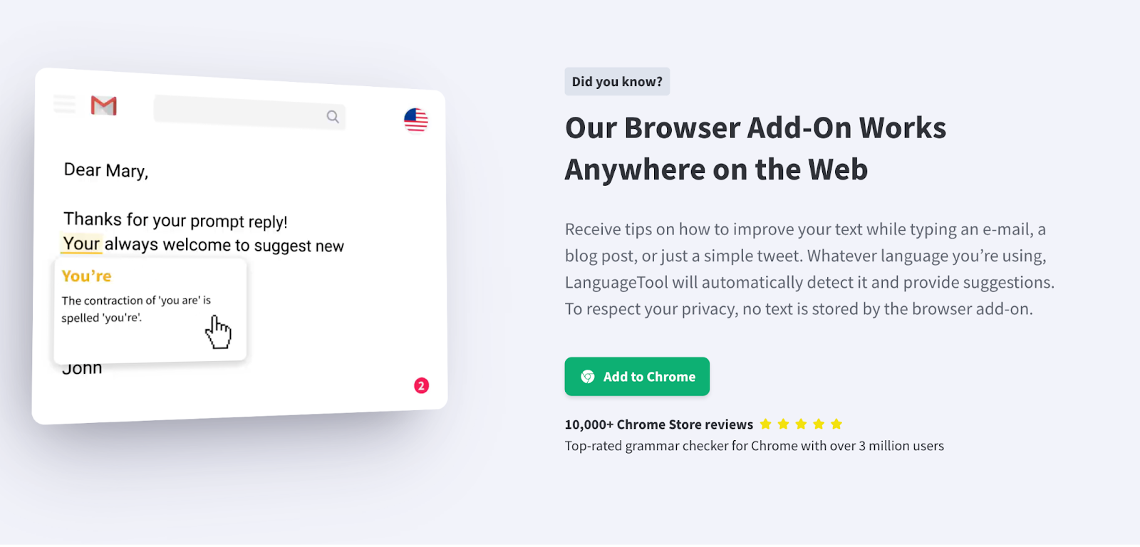 Another open-source grammar and language tool on our list, LanguageTool, works for over 25 languages. Like other writing tools, it can be used on the web and as a Chrome extension.