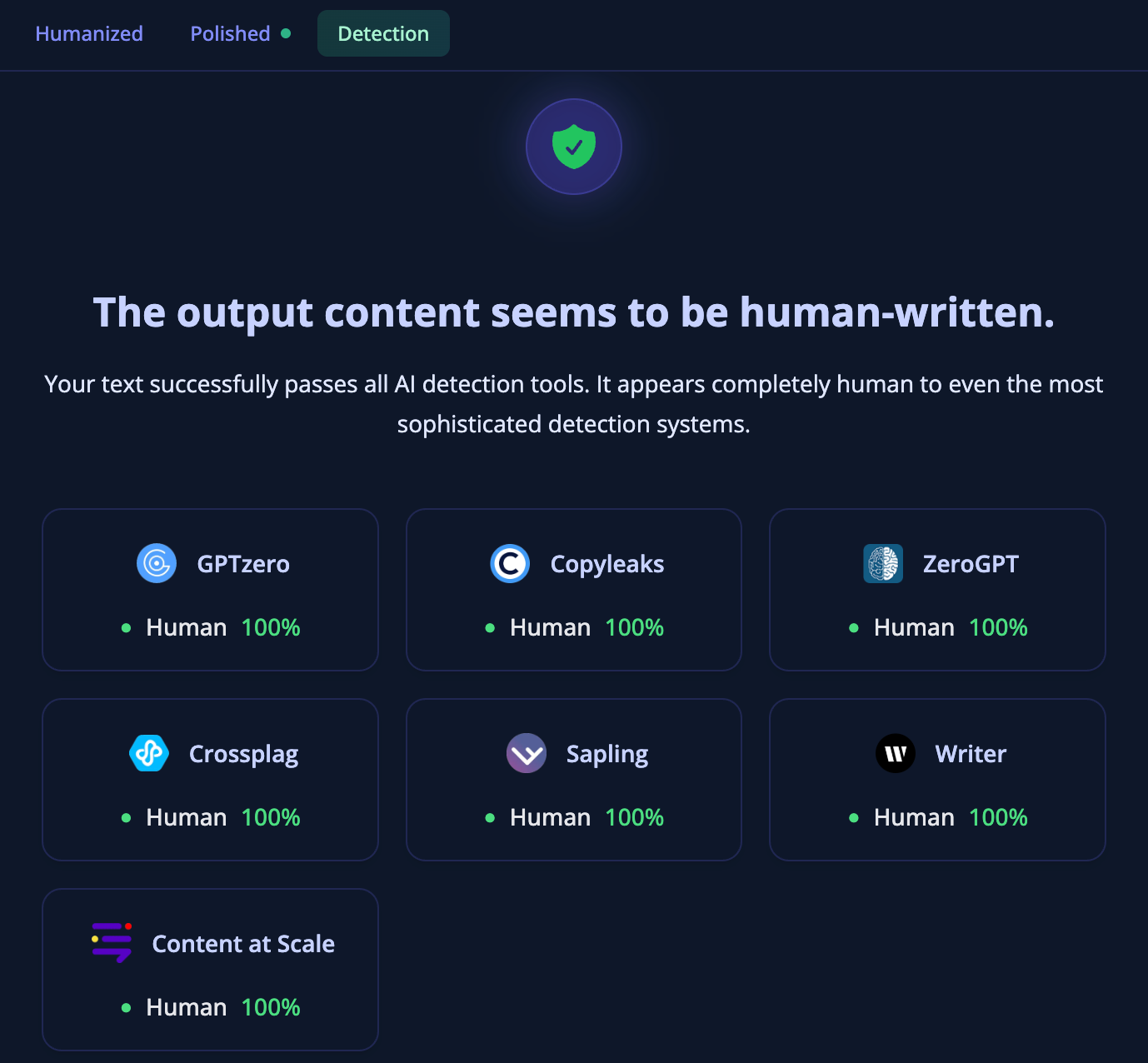 Our detector is built with adversarial robustness in mind. We have always treated AI Detection as a continuously evolving problem — improving our models and training strategies to detect more than just standard AI outputs.