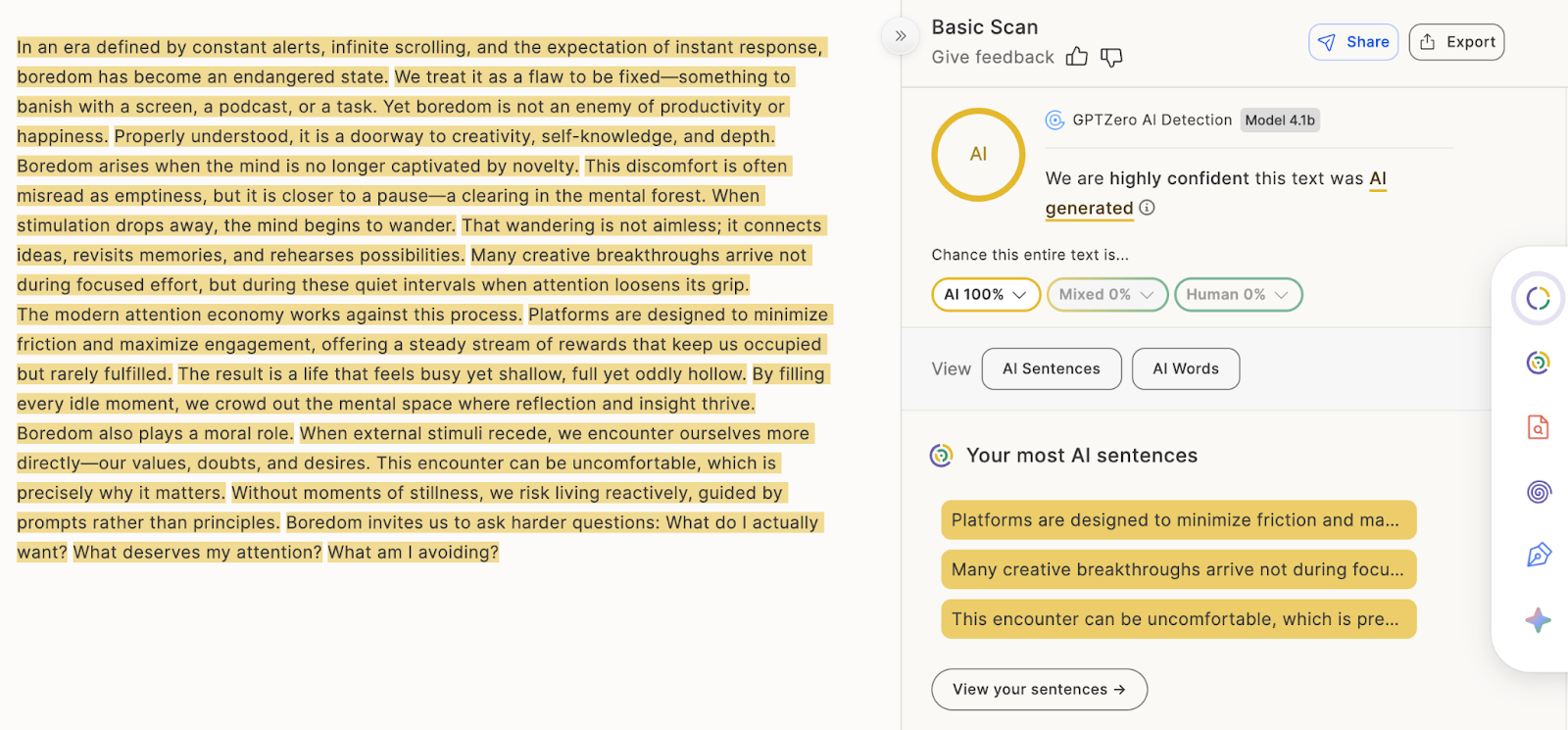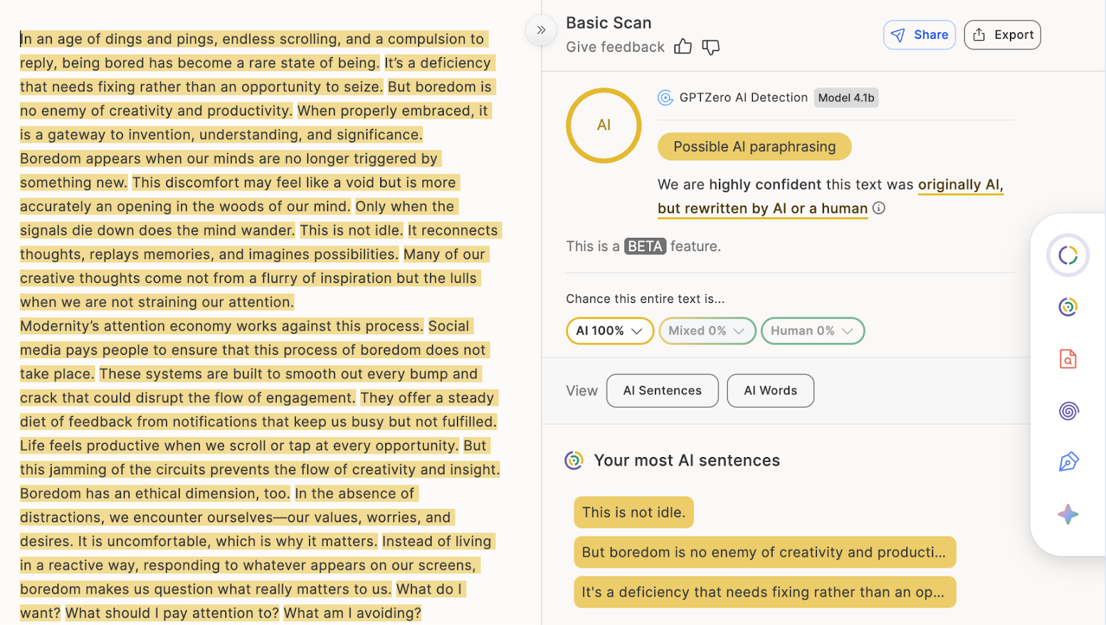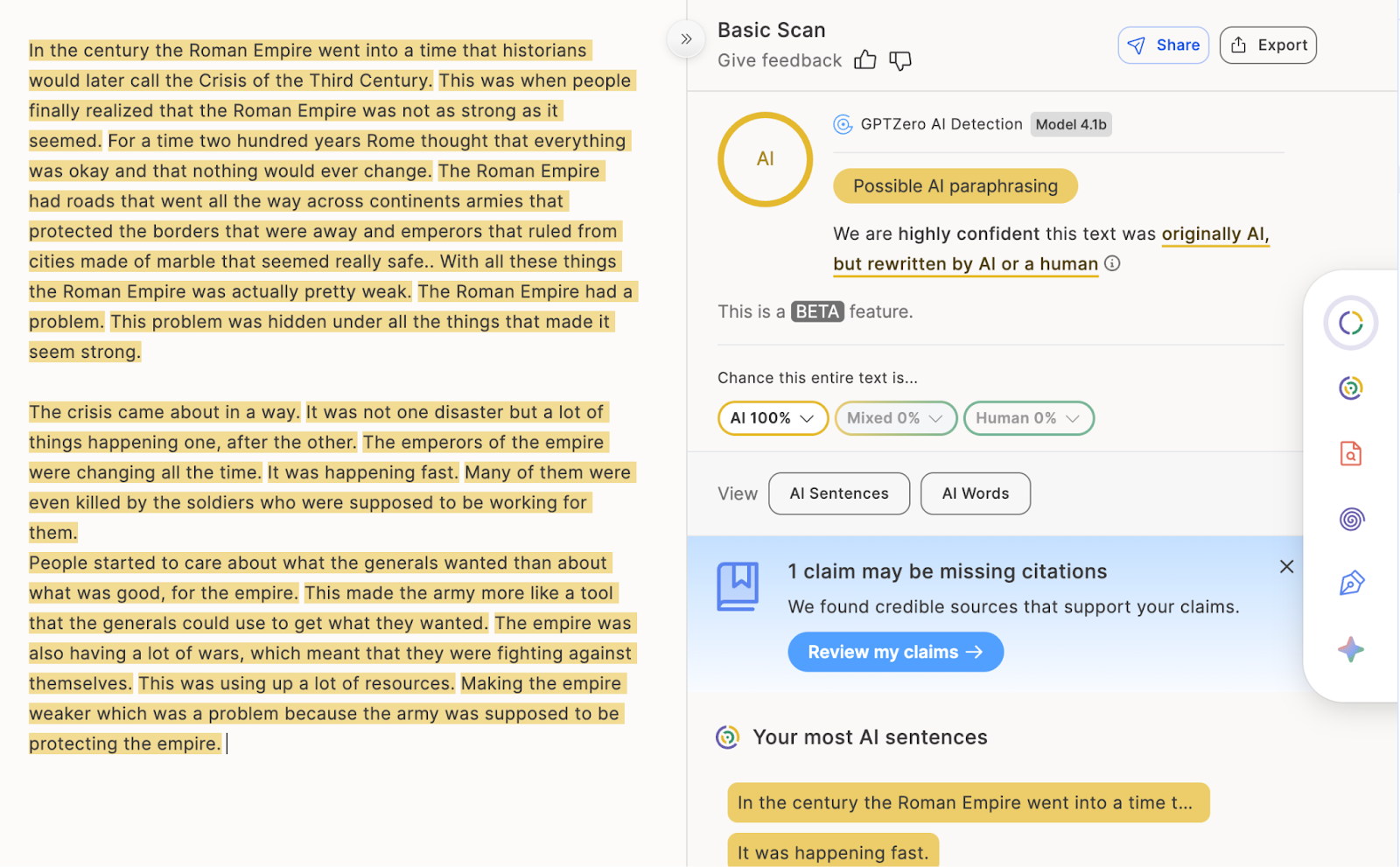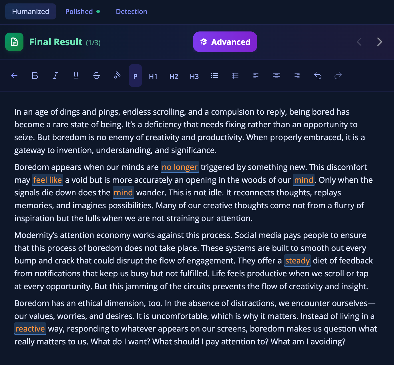 We regularly invest in stress-testing our AI detector to keep it robust against constantly evolving AI paraphrasers and refining signals beyond surface form. We strive to remain the most reliable AI detector in an increasingly adversarial AI content ecosystem.