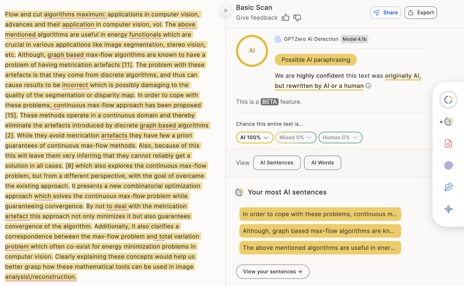 - GPTZero consistently flags originally AI-written but paraphrased text