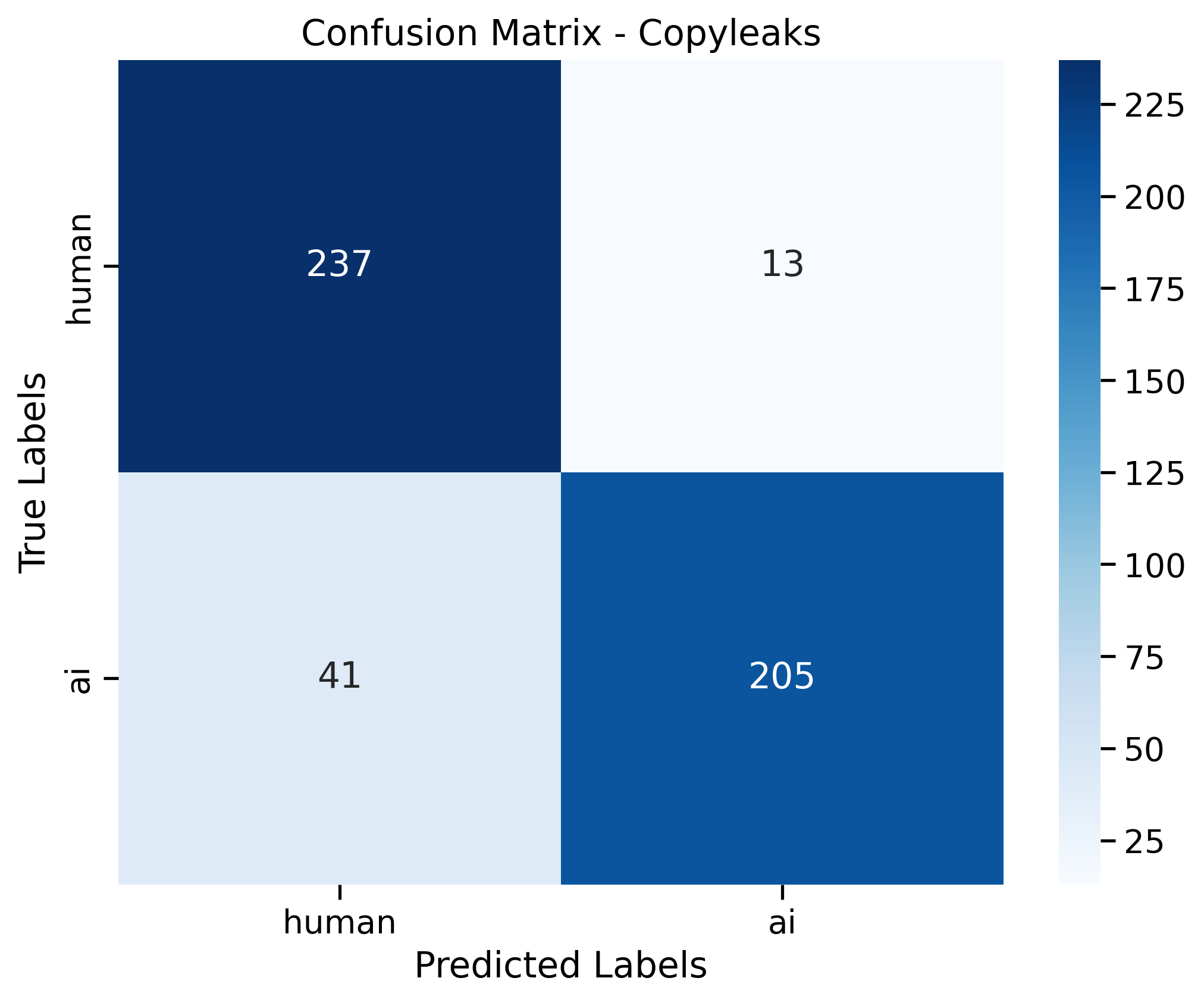 The table and figures below show various performance metrics, highlighting the fact that we are still able to identify ChatGPT quite easily. Compared to other commercially available detectors such as Copyleaks or Originality, we are able to consistently detect o1 generated texts, while maintaining a low (zero) false positive rate on human texts.