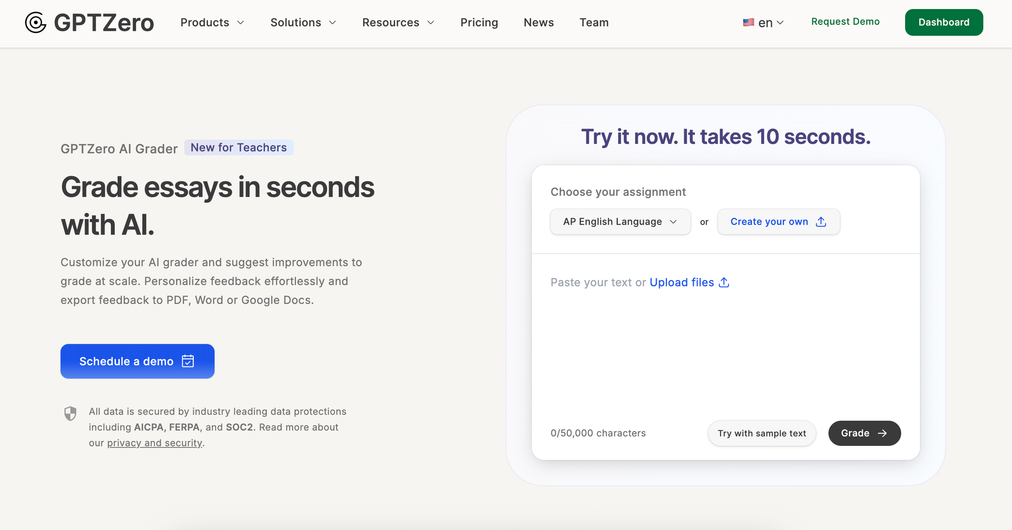 GPTZero’s AI grader helps teachers to lighten their load by combining automated essay scoring with AI detection, which can end up being a huge time-saver. It allows teachers to customize their AI grader and suggest improvements to grade at scale, helping them to personalize feedback effortlessly as well as easily exporting feedback to PDF, Word or Google Docs.
