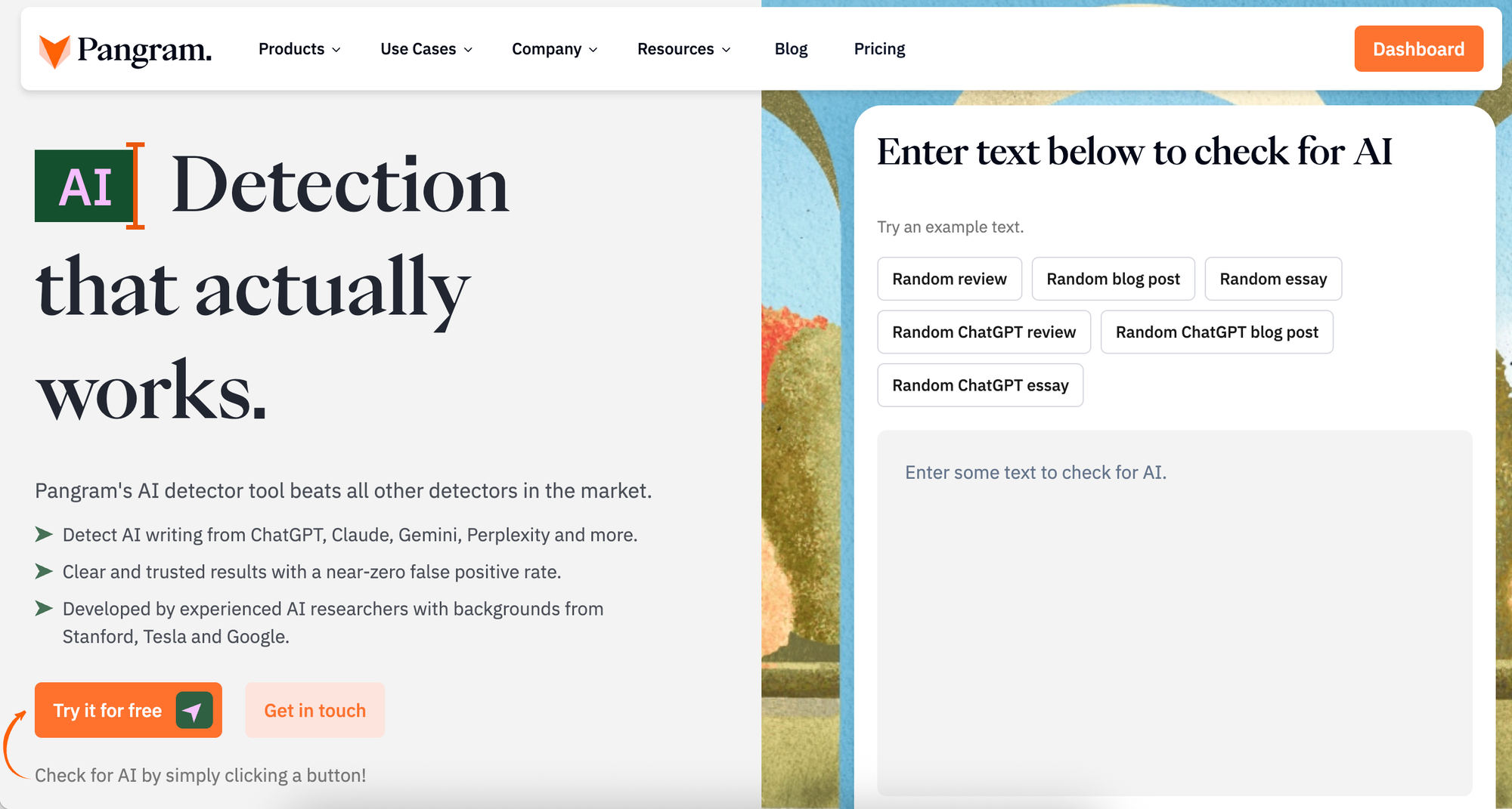 Pangram describes itself as combining “cutting-edge AI and comprehensive plagiarism detection to give you the complete picture of text authenticity and get the information you need, all in one place.”