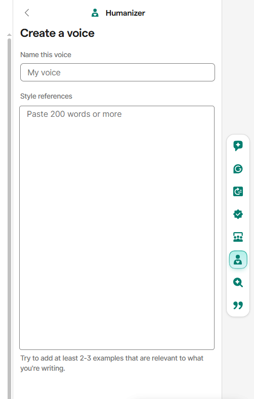 If the available voices aren’t your fit, you can create your own voice, too. You’ll simply need to add your samples of your writing style, and the custom voice will be made.