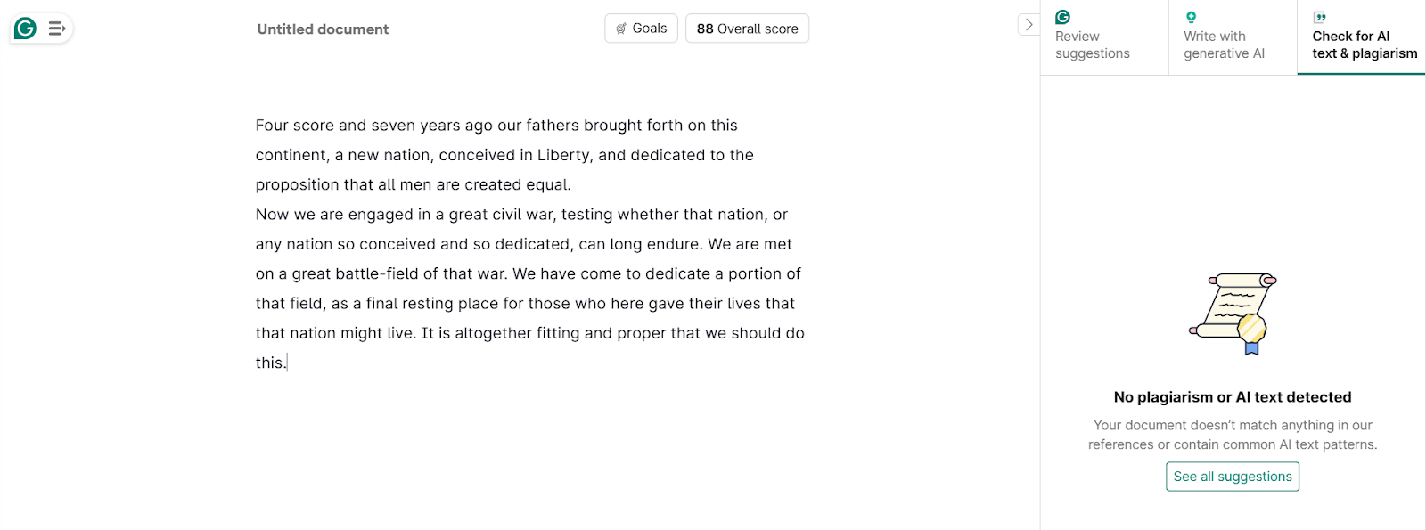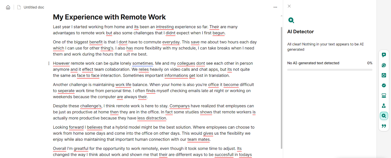 And when I ran the humanized text through Grammarly’s own AI detector, the AI score was 0%.