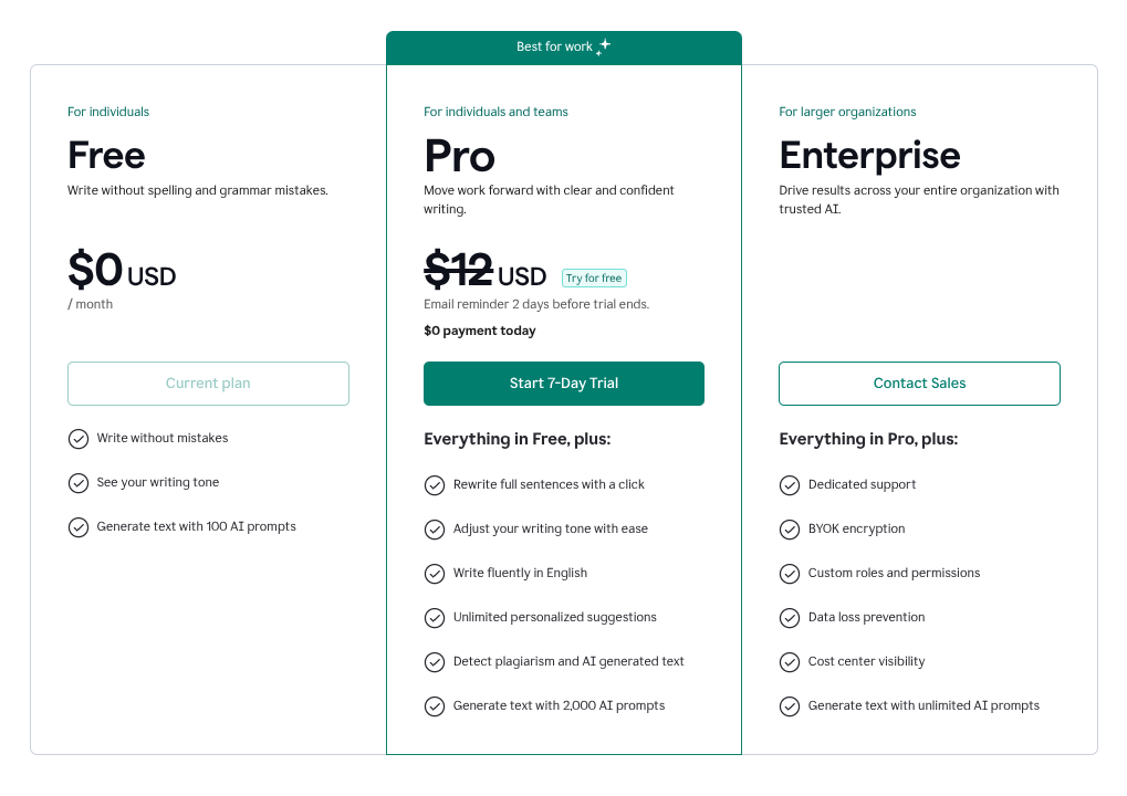 Grammarly has three plans, one of which is the forever free plan and the other two are paid.