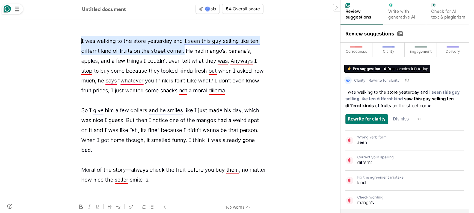For the sample text to test the two grammar checkers with, I generated a short story using ChatGPT full of writing errors.