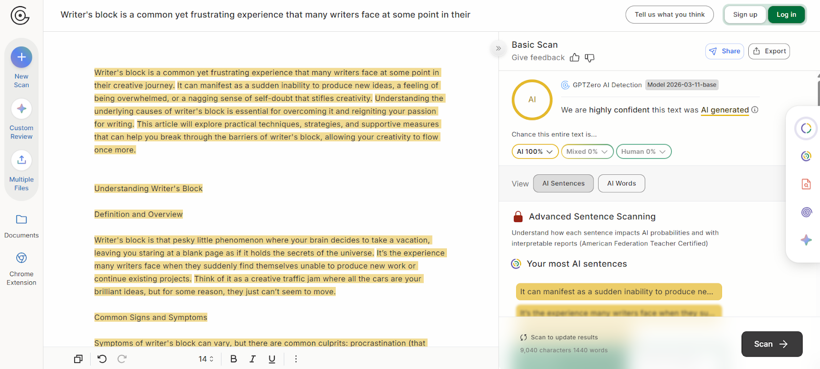 That’s why we’ll use GPTZero’s AI detector for the job.