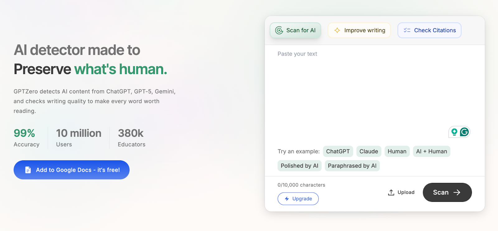 1. GPTZero (Best for Detecting AI and Improving Writing)