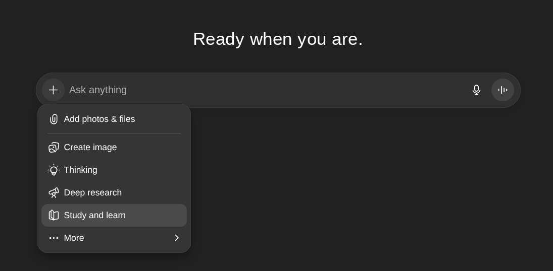 ChatGPT also released a Study mode recently, specifically for students, which, when selected, provides guidance-rich answers instead of simple responses. It lets you learn at your own pace rather than providing you with the solution in one go.