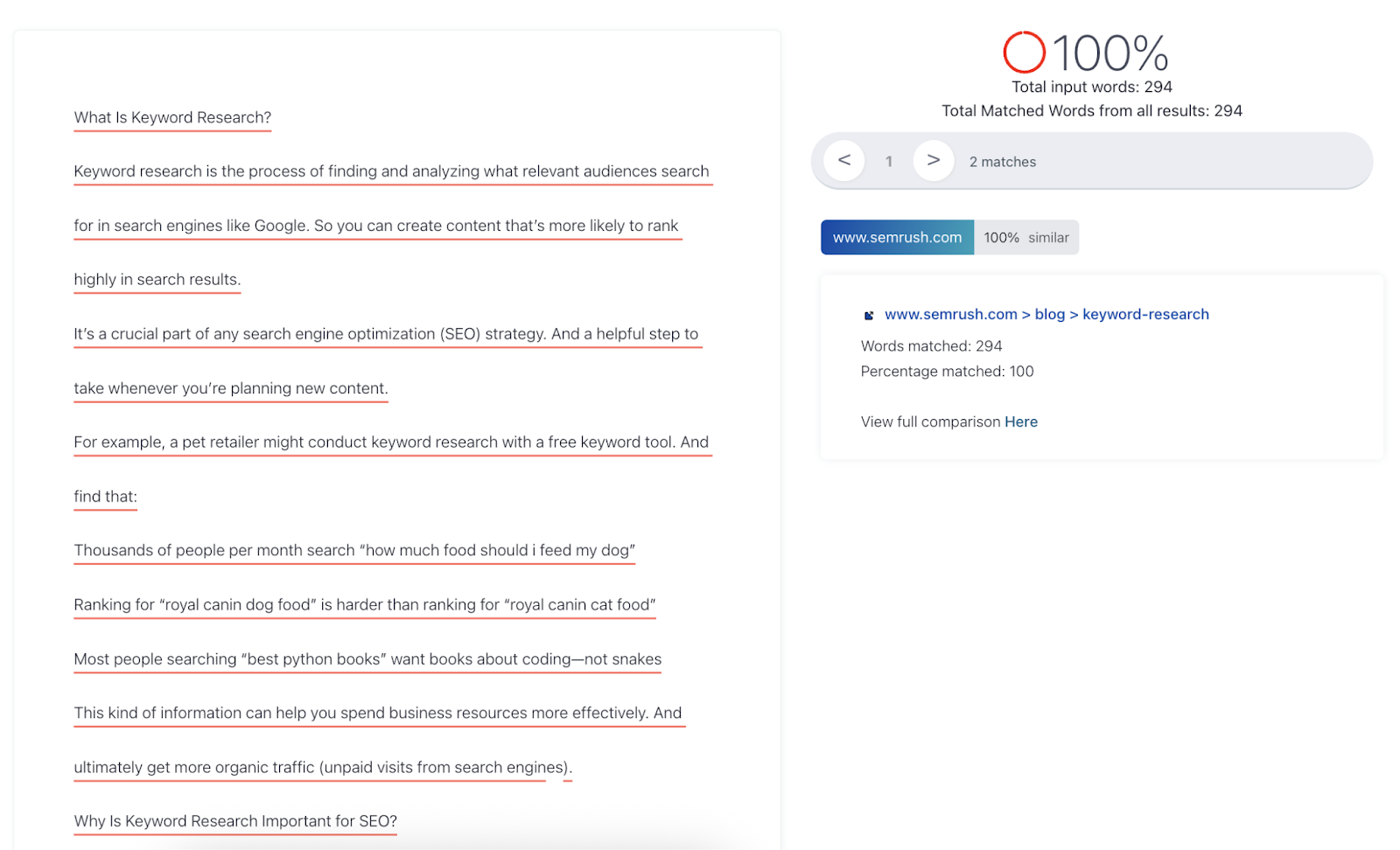 That said, Grammarly's plagiarism checker can be hit or miss. In our QuillBot vs Grammarly comparison, it did not perform well.